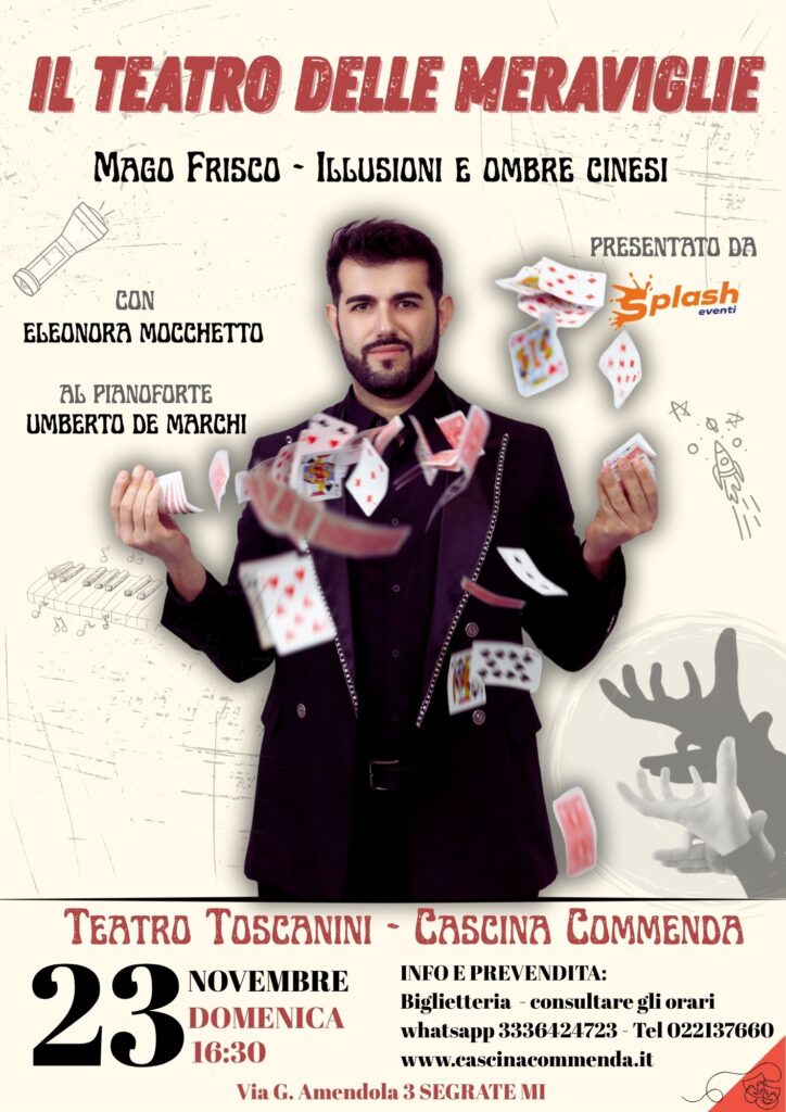 Sono Simone Marino, in arte Mago Frisco. Ombromane, illusionista e mentalista. Le tre specialità hanno qualcosa in comune: la magia.